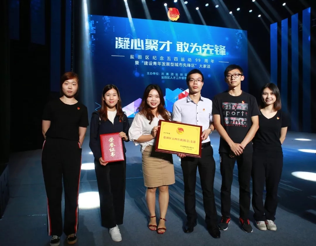 会上,,,,,,,w88优德团委第一团支部被评为2017年度盐田区“五四红旗团支部”,,,,,,,w88优德展销部吴伟玲被评为盐田区“优异共青团员”。。。。